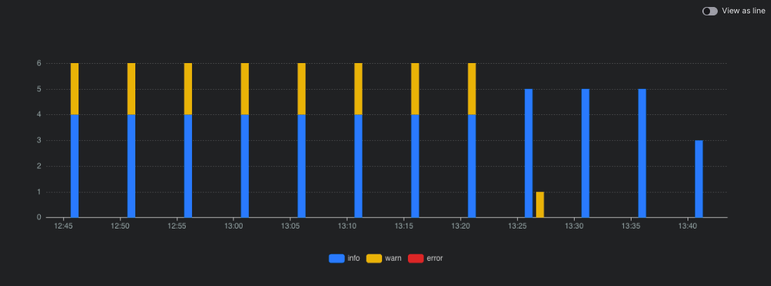 The changes suggested by Claude Code needed to be amended in order to fully solve the issue. However, they were clearly pointers in the right direction. Below is a screenshot of the lambda logs in Bronto. The chart shows the number of INFO and WARNING messages, before and after the suggested changes. We can see that the changes did solve the problem as WARNING messages are no longer present.