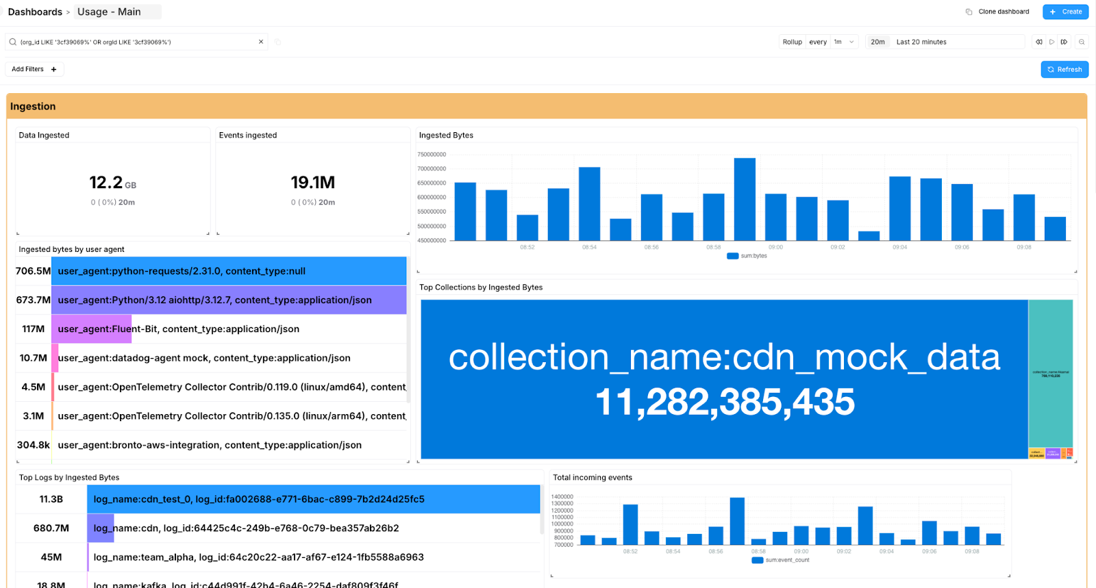 - Enter any key of interest in your SQL filter for your use case. For customer usage, I enter the specific org_id in the main query filter (e.g., org_id: 54321)